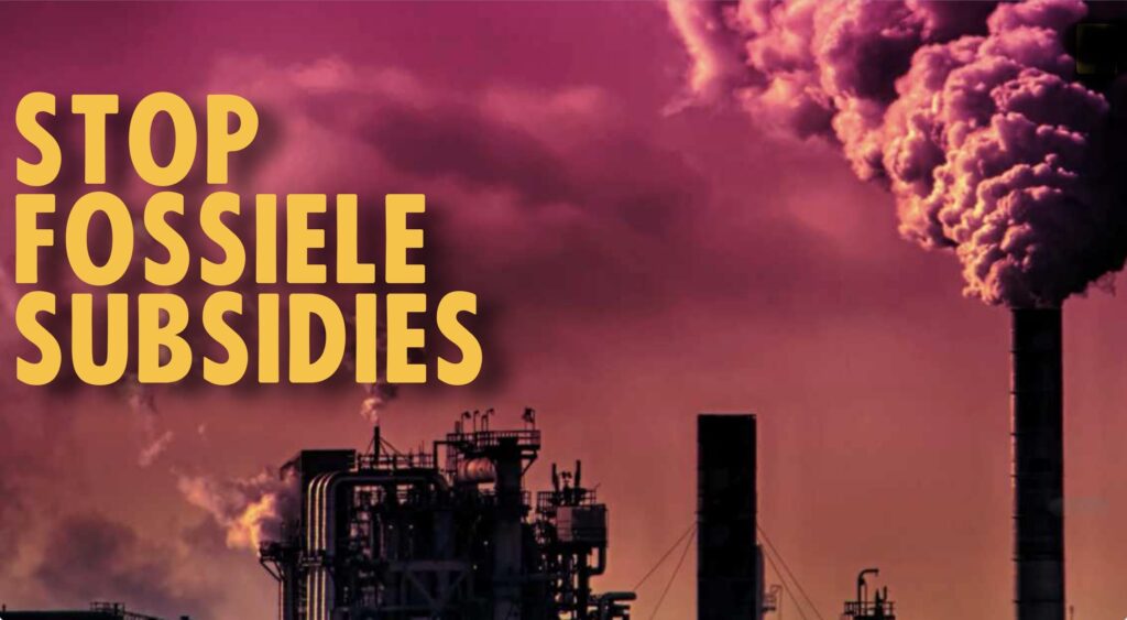 De wereld staat in brand en de Nederlandse overheid weigert in actie te komen. 39,7 tot 46,4 miljard euro aan fossiele subsidies per jaar gaat er vanuit onze overheid aan kortingen naar grote fossiele bedrijven. Dit kan niet meer en mag niet meer.>> Meer informatie